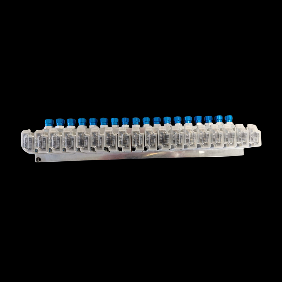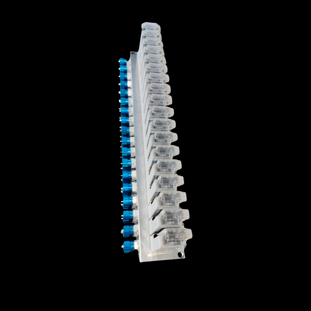 embase en aluminium usinée présente une série de perçages, taraudages et logements, nécessitant un alignement parfait entre les composants. Les opérations d’usinage ont été réalisées sur